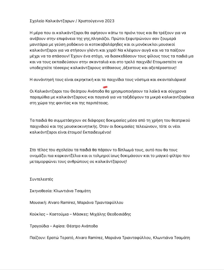 ΑρχικήΑΡΘΡΑ"Σχολείο Καλικάντζαρων" στην Καρύταινα την Παρασκευή 5 Ιανουαρίου