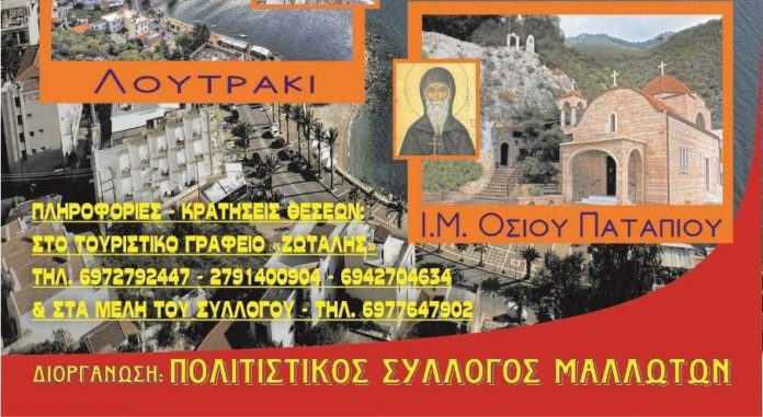 Ο Πολιτιστικός Σύλλογος Μαλλωτών συνεχίζει και φέτος τις αποδράσεις του διοργανώνοντας νέα μονοήμερη εκδρομή.