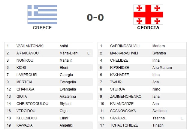 Δείτε σε πραγματικό χρόνο τα  στατιστικά του αγώνα της ΕΘΝΙΚΗΣ ΓΥΝΑΙΚΩΝ με αντίπαλο τη Γεωργία στο Δεύτερο παιχνίδι για το European League.