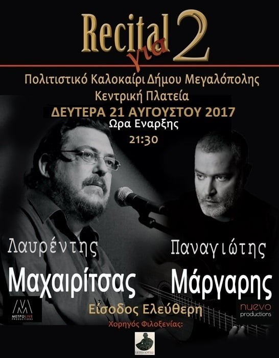 Ένα ρεσιτάλ για δύο, όπου ο σπουδαιότερος τραγουδοποιός και ερμηνευτής της γενιάς του Λαυρέντης Μαχαιρίτσας, θα συναντήσει επί σκηνής τον διεθνούς φήμης βιρτουόζο της κιθάρας Παναγιώτη Μάργαρη.