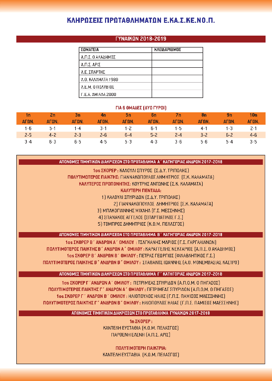 – Τέλος, στο τρίτο μέρος της Γιορτής, θα πραγματοποιηθούν οι κληρώσεις των Πρωταθλημάτων Α1 και Α2 κατηγορίας Ανδρών, αλλά και του Πρωταθλήματος Γυναικών για την αγωνιστική περίοδο 2018-2019.