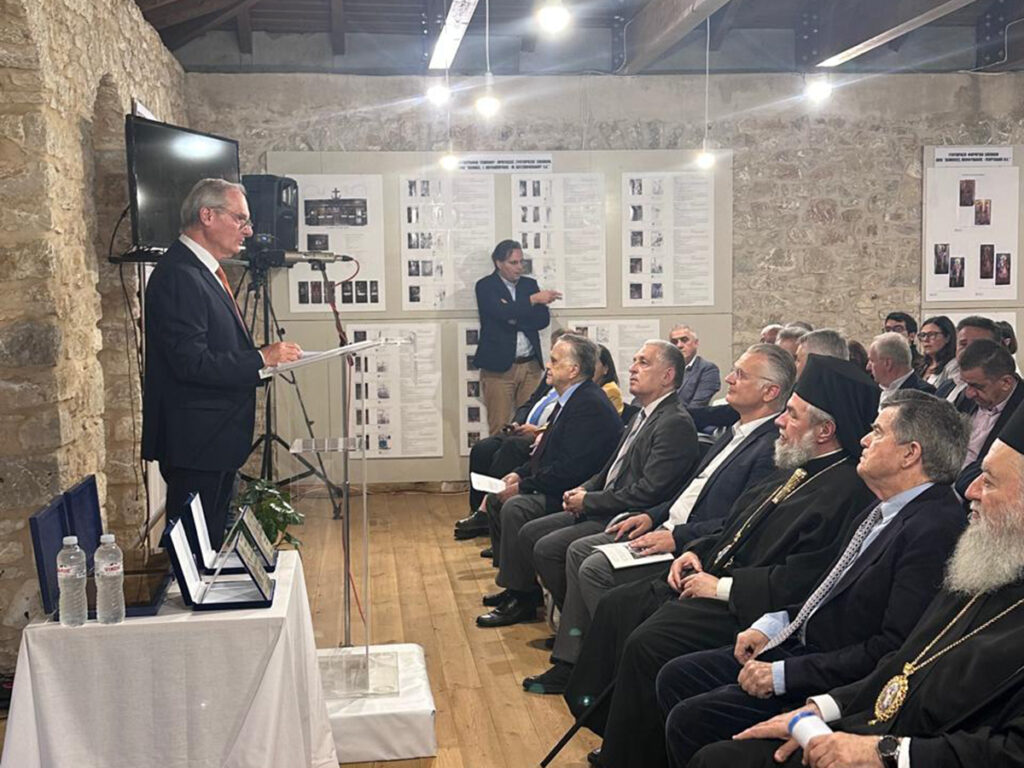 Στον χαιρετισμό του, ο Περιφερειάρχης Δημήτρης Πτωχός εξήρε την καθοριστική συμβολή του ζεύγους Μαρτίνου μέσω του Κοινωφελούς Ιδρύματος Αθανασίου και Μαρίνας Μαρτίνου. Όπως τόνισε, το Ίδρυμα αποτελεί υπόδειγμα κοινωνικής ευθύνης και προσφοράς, υποστηρίζοντας συστηματικά δράσεις και έργα στους τομείς της υγείας, της εκπαίδευσης, του πολιτισμού και της προστασίας της θρησκευτικής κληρονομιάς. «Το αποτύπωμα του Ιδρύματος είναι απτό: από αναστηλώσεις και συντηρήσεις μνημείων, μέχρι εξοπλισμούς μονάδων υγείας και υποστήριξη εκπαιδευτικών πρωτοβουλιών, η δράση του αποτελεί παρακαταθήκη για τις επόμενες γενιές», σημείωσε.