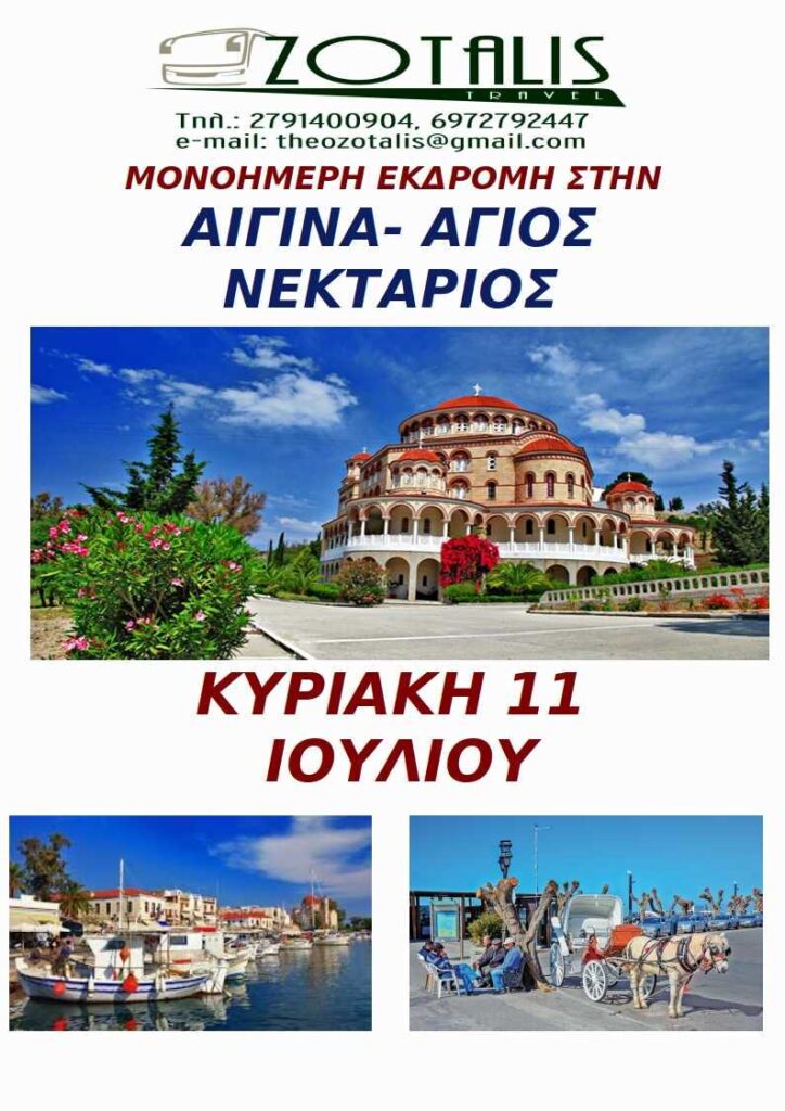- 11/7/21 -Κυριακή: Ημερήσια εκδρομή στην Αίγινα – Άγιος Νεκτάριος.