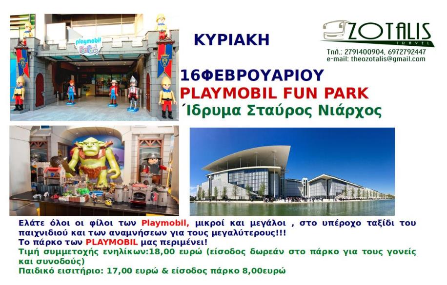 16/2/20 – Κυριακή:Ημερήσια εκδρομή στην Αθήνα, στο Ίδρυμα Σταύρος Νιάρχος και στο πάρκο των Playmobil.