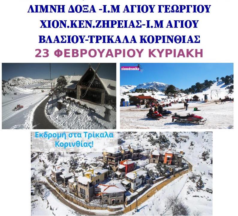 23/2/20 – Κυριακή: Ημερήσια εκδρομή στο Χιονοδρομικό κέντρο Ζήρειας – Τρίκαλα Κορινθίας.