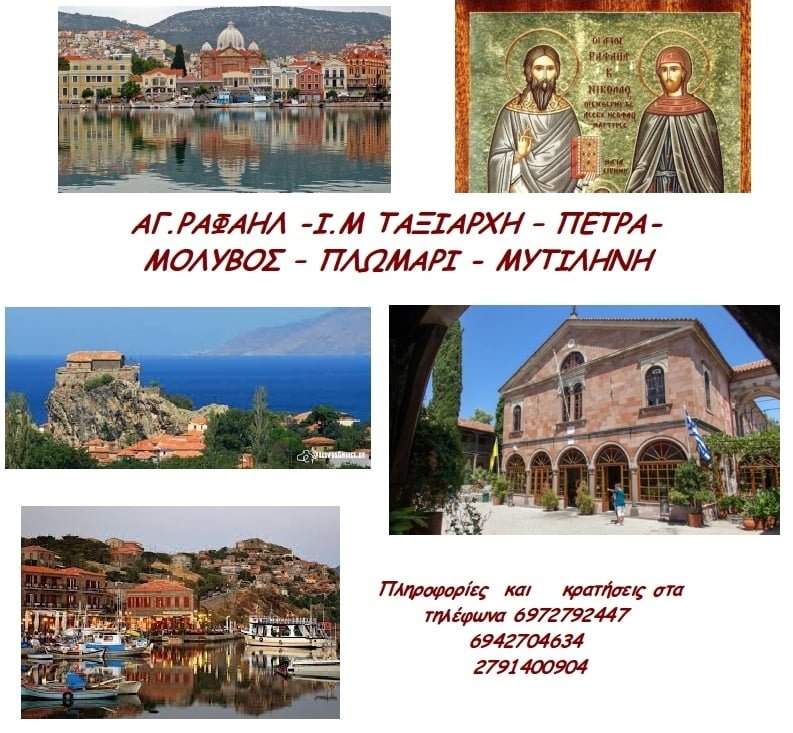 Το τουριστικό γραφείο Ζώταλη έχει προγραμματίσει το διάστημα 21-24 Σεπτεμβρίου τετραήμερη προσκυνηματική εκδρομή στο πανέμορφο νησί της Λέσβου, με τον γύρο της Μυτιλήνης.
