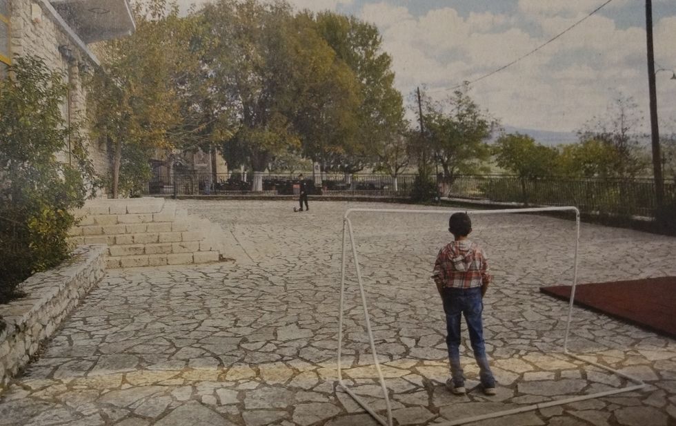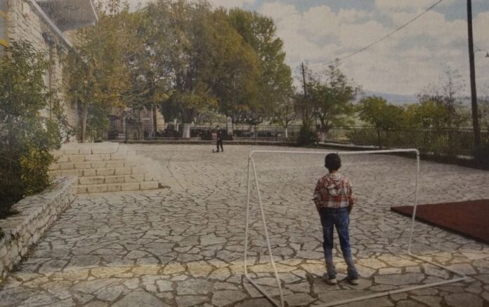 και με χαρακτηριστική πρωτοσέλιδη εικόνα (παράδειγμα) από το προαύλιο του μεγαλοπρεπούς σχολείου της Καρύταινας με τους μοναδικούς δύο μαθητές του να παίζουν ποδόσφαιρο.