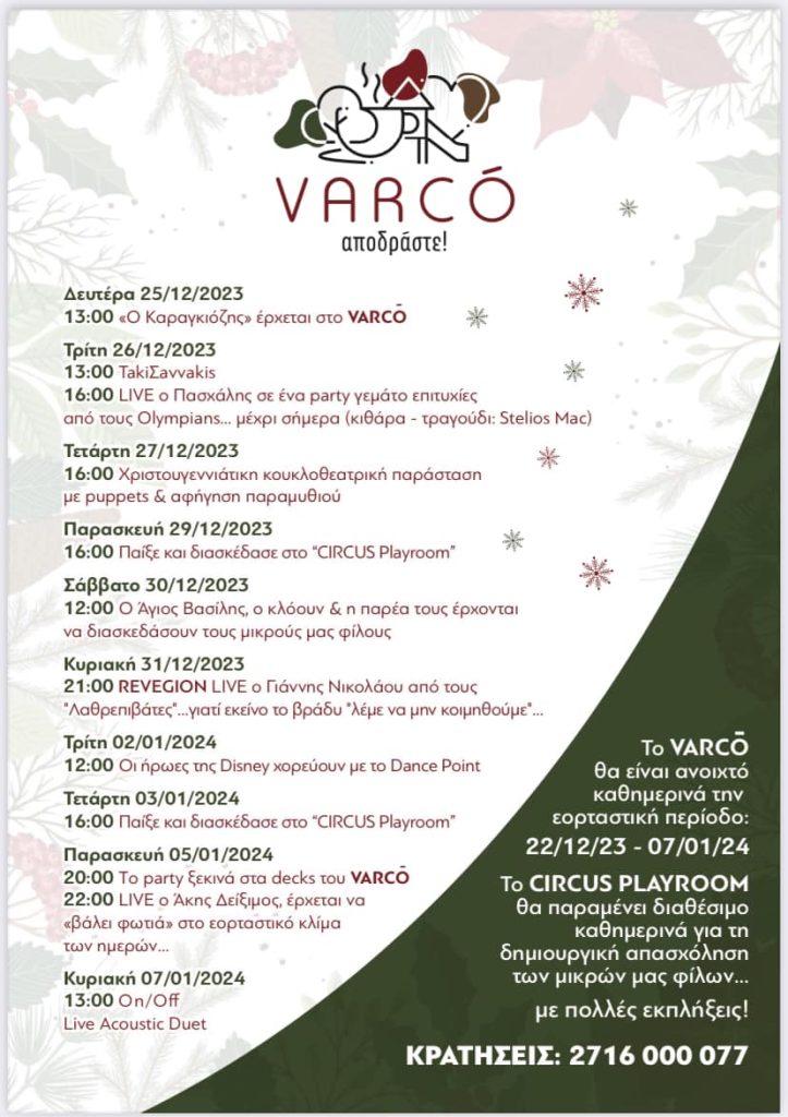 ΑρχικήΑΡΘΡΑΤο εορταστικό πρόγραμμα στον πολυχώρο VARCO Το εορταστικό πρόγραμμα στον πολυχώρο VARCO By kafeneio-megalopolis 20 Δεκεμβρίου 2023 0 1223 FacebookTwitterWhatsAppViberEmailΤυπώνω Ακολουθήστε τo Kafeneio-Megalopolis.gr στο Google News, για να μαθαίνετε πρώτοι όλα τα νέα από τη Μεγαλόπολη και την ευρύτερη περιοχή. Το εορταστικό πρόγραμμα στον πολυχώρο VARCO στο Αθήναιο Αρκαδίας Σχόλια με λογαριασμό Facebook TagsΑΡΘΡΑ FacebookTwitterWhatsAppViberEmailΤυπώνω Ακολουθήστε τo Kafeneio-Megalopolis.gr στο Google News, για να μαθαίνετε πρώτοι όλα τα νέα από τη Μεγαλόπολη και την ευρύτερη περιοχή. Προηγούμενο άρθροΧριστουγεννιάτικο Bazaar για τα αδέσποτα του Δήμου Μεγαλόπολης το Σάββατο 23 ΔεκεμβρίουΕπόμενο άρθροΓΕΝΟΠ ΔΕΗ: Η ΔΕΗ με την ανοχή-συμμετοχή της κυβέρνησης προχωρεί ακάθεκτα στην ιδιωτικοποίηση της kafeneio-megalopolis RELATED ARTICLES ΑΡΘΡΑ Διακοπή κυκλοφορίας και απαγόρευση στάθμευσης σε κεντρικούς δρόμους της Μεγαλόπολης το Σάββατο 11 και την Κυριακή 12 Οκτωβρίου kafeneio-megalopolis - 8 Οκτωβρίου 2025 ΑΡΘΡΑ Διακοπή ηλεκτροδότησης σε χωριά της Μεγαλόπολης την Παρασκευή 10 Οκτωβρίου kafeneio-megalopolis - 8 Οκτωβρίου 2025 ΑΡΘΡΑ Κέντρο Υγείας Μεγαλόπολης – Η Μαία δίπλα στην Γυναίκα kafeneio-megalopolis - 7 Οκτωβρίου 2025 ΑΦΗΣΤΕ ΜΙΑ ΑΠΑΝΤΗΣΗ Ακύρωση απάντησηςΣυνδεθείτε για να αφήσετε ένα σχόλιο ΑναζήτησηΑναζήτηση Άρθρων 11,758ΥποστηρικτέςΚάντε Like1,644ΑκόλουθοιΑκολουθήστε6,038ΣυνδρομητέςΓίνετε συνδρομητής FACEBOOK ΑΡΘΡΑ Διακοπή κυκλοφορίας και απαγόρευση στάθμευσης σε κεντρικούς δρόμους της Μεγαλόπολης το Σάββατο 11 και την Κυριακή 12 Οκτωβρίου Λόγω των αγώνων ποδηλασίας στη Μεγαλόπολη, για το Πανελλήνιο Κύπελλο και το Πρωτάθλημα Ενόπλων... 8 Οκτωβρίου 2025 ΑΡΘΡΑ Διακοπή ηλεκτροδότησης σε χωριά της Μεγαλόπολης την Παρασκευή 10 Οκτωβρίου Σας ενημερώνουμε ότι την Παρασκευή 10 Οκτωβρίου 2025 θα γίνει διακοπή ηλεκτροδότησης σε Δημοτικές... 8 Οκτωβρίου 2025 ΑΡΘΡΑ Κέντρο Υγείας Μεγαλόπολης – Η Μαία δίπλα στην Γυναίκα Ο Οκτώβριος είναι παγκόσμιος μήνας, αφιερωμένος στην ευαισθητοποίηση για τον καρκίνο του μαστού, με στόχο έχει... 7 Οκτωβρίου 2025 ΑΡΘΡΑ Συνεδρίαση Δημοτικού Συμβουλίου Μεγαλόπολης την Τρίτη 7 Οκτωβρίου Σας προσκαλούμε όπως, την 7η του μήνα Οκτωβρίου του έτους 2025, ημέρα της εβδομάδας ... 7 Οκτωβρίου 2025 ΠΡΟΣΦΑΤΑ ΣΧΟΛΙΑ Ασημακόπουλος Ιωάννης επί Παρουσίαση βιβλίου “Τα Αρκαδικά Μονοπάτια και τα Apollo Trails στο Λύκαιο Όρος, το ιερό βουνό των Αρκάδων” το Σάββατο 19 Αυγούστου στη Μεγαλόπολη Ασημακόπουλος Ιωάννης επί Νίκας: Προχωρεί η διαδικασία για το φωτοβολταϊκό των 2.000 στρεμμάτων στη Μεγαλόπολη που θα χρησιμοποιηθεί από τους αγρότες της Μεσσηνίας και της Αργολίδας Γιώργος Αδαμόπουλος επί Ερώτημα προς την αρμόδια Περιφέρεια Πελοποννήσου για την ασφαλή λειτουργία της “νέας” Γέφυρας του Αλφειού στην Καρύταινα Κατριβανος επί Ερώτημα προς την αρμόδια Περιφέρεια Πελοποννήσου για την ασφαλή λειτουργία της “νέας” Γέφυρας του Αλφειού στην Καρύταινα