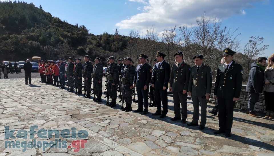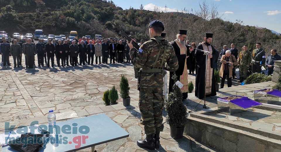 Τιμές απέδωσαν η Φιλαρμονική Μεγαλόπολης και άγημα από την 124 Π.Β.Ε. της Αεροπορίας.