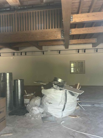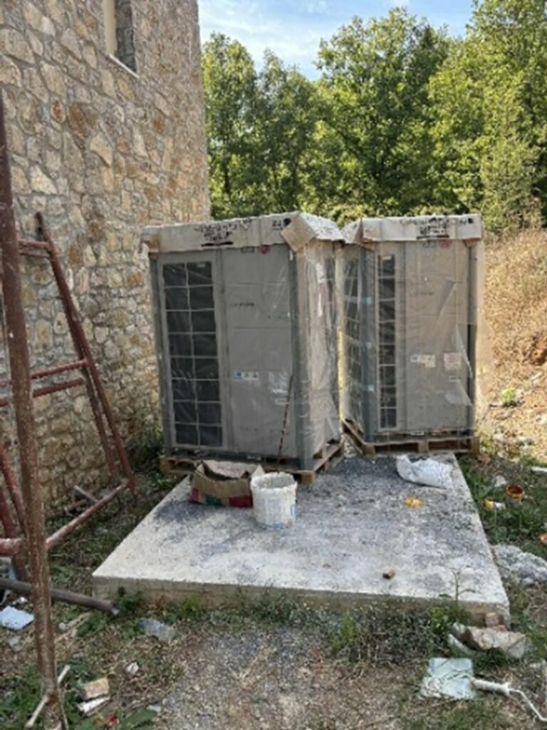 Μπάζα αφημένα όπου έπεσαν, από τρύπες που άνοιξαν στους τοίχους για να περάσουν σωλήνες που μένουν στον αέρα. Οι κεντρικές μονάδες κλιματισμού αφημένες χωρίς να τοποθετηθούν και να συνδεθούν. Τρύπες ανοιχτές στους τοίχους. Σκουπίδια, σκαλωσιές, ενώ στην πίσω είσοδο έχουν φυτρώσει βάτοι. Στο εσωτερικό, όσο ήταν δυνατό να δει κανείς αφού οι πόρτες είναι κλειδωμένες, σκουπίδια, πάτωμα που χρειάζεται τρίψιμο, τα κλιματιστικά στα κιβώτια και ποιος ξέρει τι άλλο αν τα δει κανείς από κοντά.
