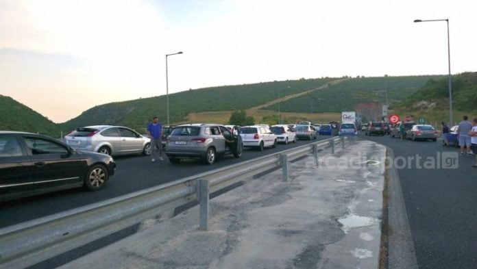 Στη φωτογραφία, που μας την έστειλε αναγνώστης, η «ουρά» που σχηματίστηκε στην Εθνική οδό μετά το τροχαίο.