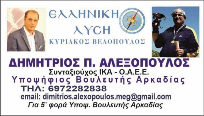Ο Δημήτριος Αλεξόπουλος είναι υποψήφιος Βουλευτής στην Αρκαδία με το κόμμα Ελληνική Λύση του Κυριάκου Βελόπουλου