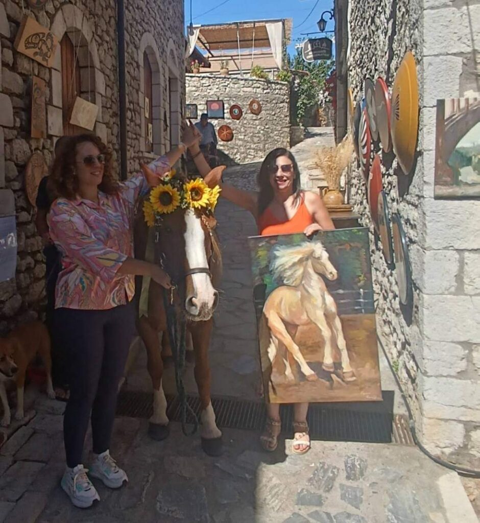 Ο σύλλογος Καρυτινών Αθήνας και Πειραιά “Ο Θεόδωρος Κολοκοτρώνης” ήταν δίπλα μας και η νεοσύστατη επιχείρηση Stefiis Equestrian tours, με έδρα την Καρύταινα συνέβαλε τα μέγιστα στην εντυπωσιακή έναρξη του 3ου Φεστιβάλ Τέχνης. Το αγαπημένο μας άλογο Λόρα, στολισμένο κι απόλυτα συνεργάσιμο κάλπαζε στο ρυθμό που του υποδείκνυε ένας ταλαντούχος βιολιστής!!!!