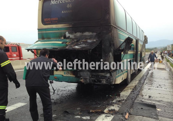 Λεωφορείο του ΚΤΕΛ Μεσσηνίας που εκτελούσε το δρομολόγιο Καλαμάτα – Αθήνα, έπιασε φωτιά την Παρασκευή γύρω στις 10.30 το πρωί, στα Παραδείσια, στον αυτοκινητόδρομο.