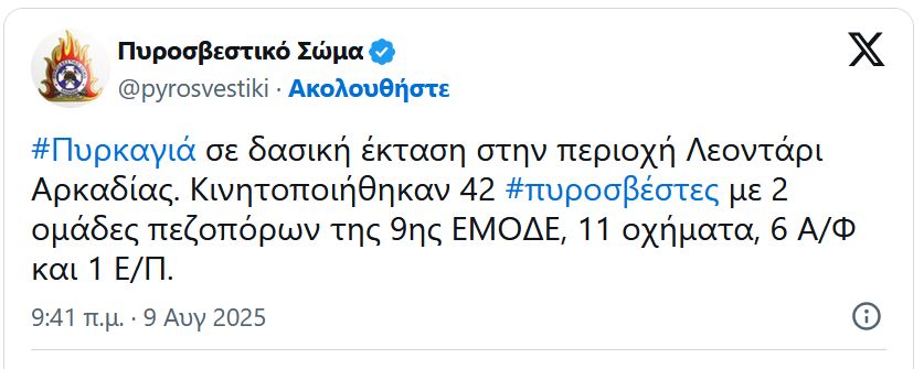 Φωτιά ξέσπασε πριν από λίγο ανάμεσα στο Λεοντάρι και την Μονή Μπούρα, με κατεύθυνση προς την κορυφή του βουνού και την Ποταμιά.