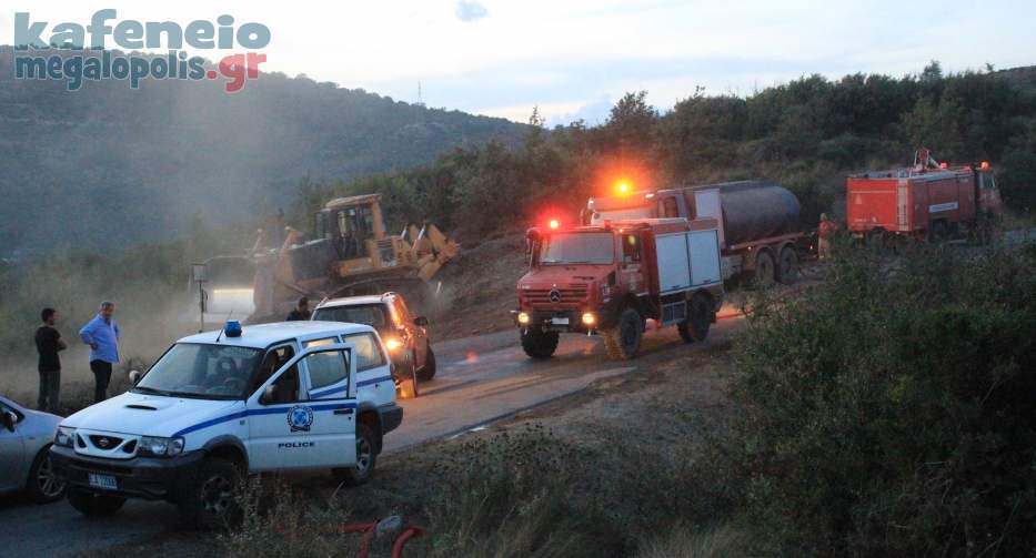Σε πολύ γρήγορο χρονικό διάστημα έγινε επέμβαση από την Πυροσβεστική και μάλιστα στην κατάσβεση συμμετείχαν πολλά εναέρια μέσα. Συνολικά 5 αεροσκάφη, 1 ελικόπτερο και 32 πυροσβέστες με 14 οχήματα αλλά και πεζοπόρα τμήματα. Η ΔΕΗ ( νέα Θυγατρική Μεγαλόπολης) έστειλε υδροφόρα και ένα ερπυστριοφόρο μηχάνημα, ο Δήμος Μεγαλόπολης έχει διαθέσει 3 μικρά πυροσβεστικά, μια υδροφόρα και έναν φορτωτή. Επίσης οι αδερφοί Κωνσταντόπουλοι από τις Χιράδες πρόσφεραν σημαντική βοήθεια με ένα ερπυστριοφόρο μηχάνημα.
