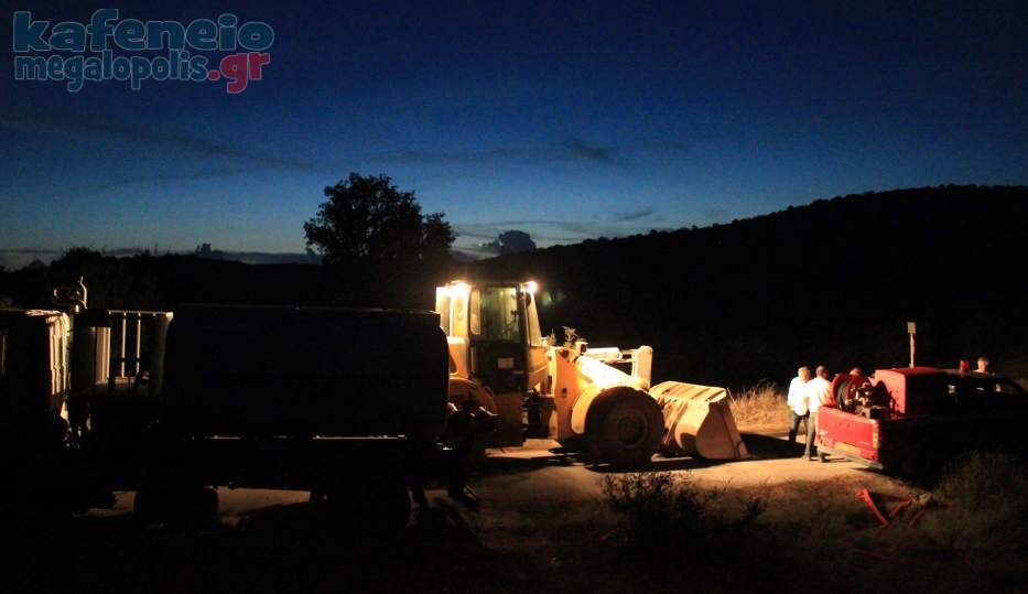 Τις δυνάμεις της Πυροσβεστικής συνδράμει υδροφόρα και φορτωτής του Δήμου Μεγαλόπολης.