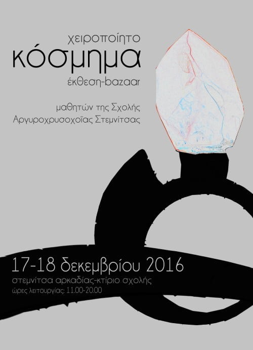 Στις 17-18 Δεκεμβρίου μπορείτε να βρείτε κοσμήματα μαθητών της Σχολής, γούρια, χριστουγεννιάτικα δωράκια και άλλες μικρές εκπλήξεις στην έκθεση-bazaar των μαθητών της Σχολής Αργυροχρυσοχοΐας Στεμνμίτσας, που θα πραγματοποιηθεί στο κτίριο της Σχολής.