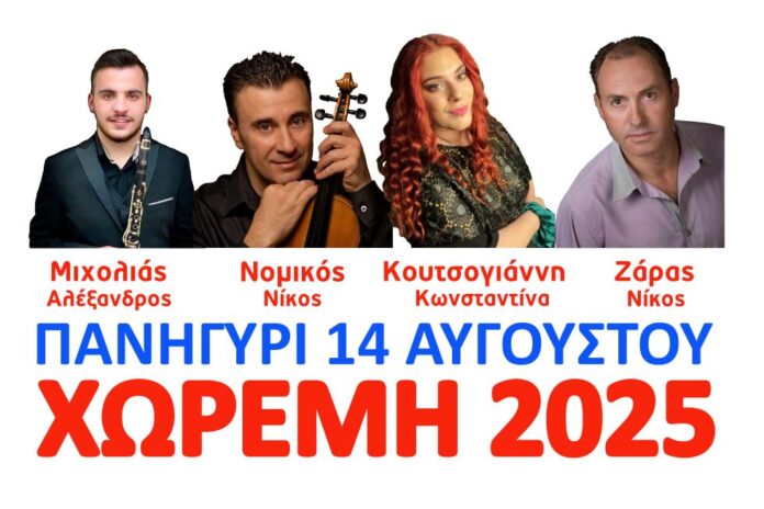 Ο Πολιτιστικός Σύλλογος Χωρεμαίων, «Η Κοίμηση της Θεοτόκου» διοργανώνει και φέτος το παραδοσιακό πανηγύρι την Πέμπτη 14 Αυγούστου , το βράδυ στην πλατεία του χωριού.