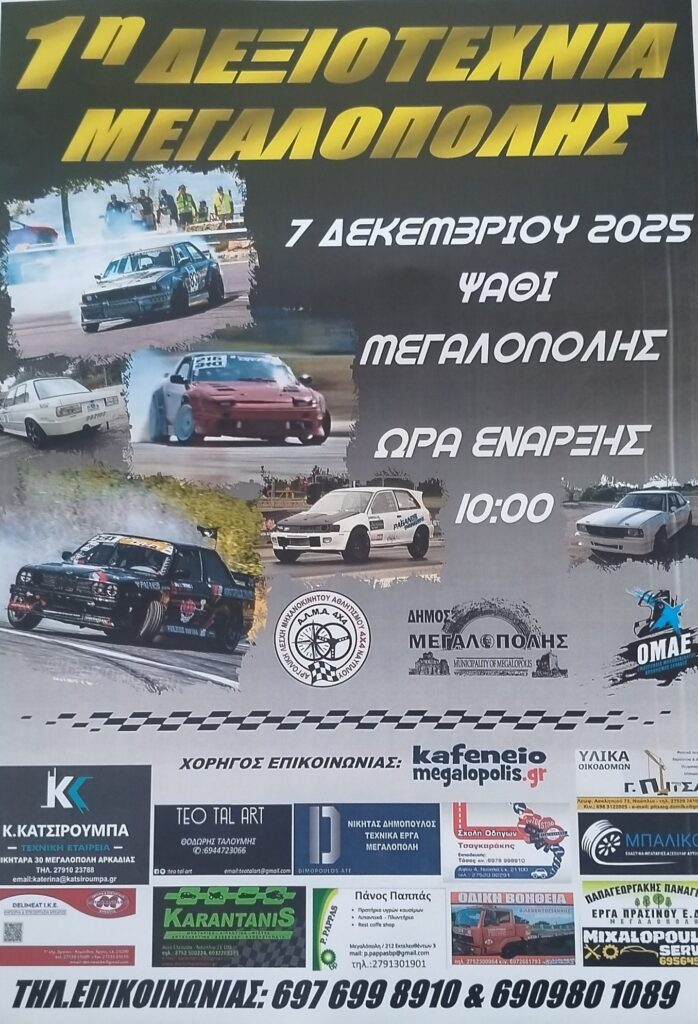Η ΑΛΜΑ 4Χ4 Ναυπλίου με τον Δήμο Μεγαλόπολης διοργανώνει τη 1η δεξιοτεχνία Μεγαλόπολης τη Κυριακή στις 7/12/2025 στις 10:00