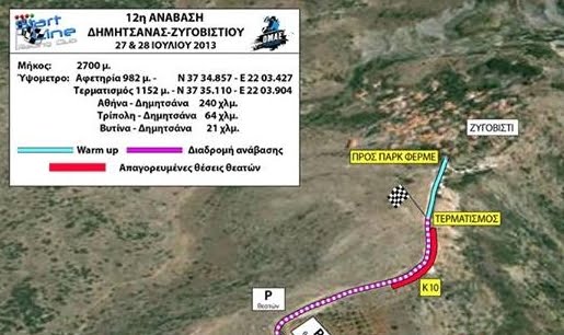 Η πανέμορφη Δημητσάνα και το γραφικό Ζυγοβίστι είναι πανέτοιμες να φιλοξενήσουν και πάλι την Ανάβαση Δημητσάνας-Ζυγοβιστίου που θα διεξαχθεί στις 27 & 28 Ιουλίου 2013. Όλοι οι φίλοι αγωνιζόμενοι, οι δημοσιογράφοι και οι φίλοι του μηχανοκίνητου αθλητισμού θα απολαύσουν ένα ακόμα Σ/Κ στο κέντρο της Πελοποννήσου, σε μια πολύ ενδιαφέρουσα αγωνιστικά διαδρομή με υπέροχη θέα.