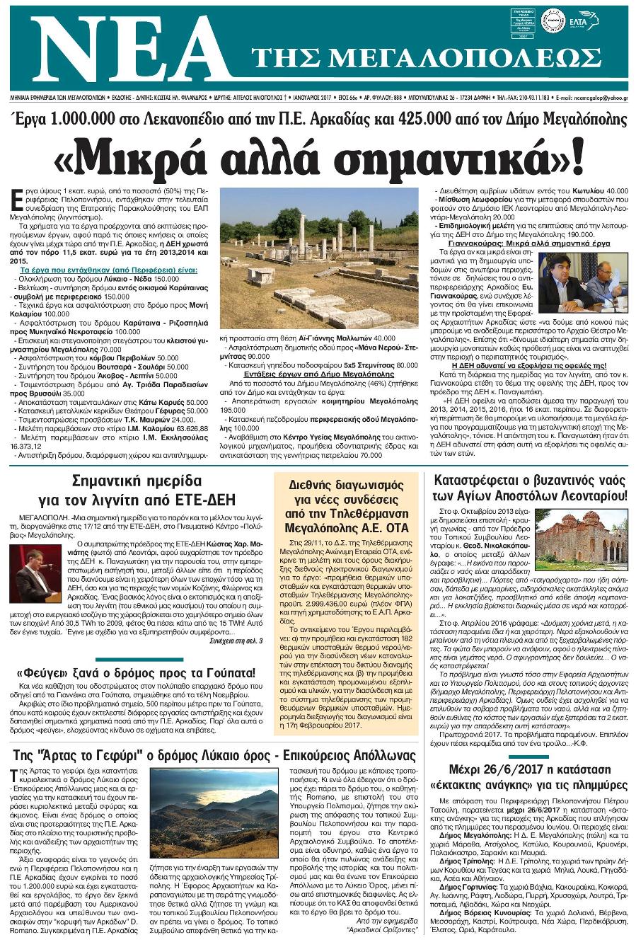 3 θέματα από το φύλλο Ιανουαρίου 2017 της εφημερίδας “Νέα της Μεγαλόπολης”
