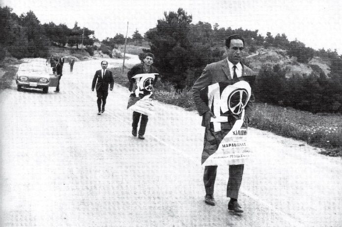 Ο Γρηγόρης Λαμπράκης ήταν γιατρός, πρωταθλητής στίβου (Βαλκανιονίκης), αντιπρόεδρος της ΕΕΔΥΕ και βουλευτής της ΕΔΑ. Στις 21 Απρίλη 1963 πραγματοποιήθηκε η 1η Μαραθώνια Πορεία Ειρήνης. Παρά την κρατική απαγόρευση, ξεκίνησε η πορεία με χιλιάδες οδοιπόρους. Στη διάρκειά της έγιναν εκατοντάδες συλλήψεις και προπηλακισμοί με δεκάδες τραυματίες. Ο Γρηγόρης Λαμπράκης με μερικούς άλλους αγωνιστές ολοκλήρωσαν την πορεία. Ένα μήνα μετά στη Θεσσαλονίκη στις 27 Μαΐου 1963 δολοφονήθηκε από παρακρατικούς μηχανισμούς με τη στήριξη και την ανοχή του κράτους.