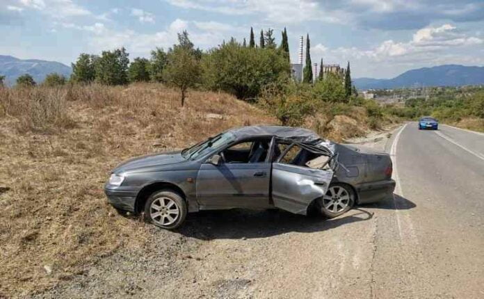 Ένα Ι.Χ. επιβατηγό όχημα ανατράπηκε στον δρόμο προς την Θωκνία σήμερα το μεσημέρι.