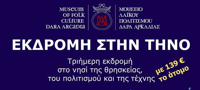 Το Μουσείο Λαϊκού Πολιτισμού Δάρα, υπό την αιγίδα του Συνδέσμου Δαραίων, διοργανώνει 3ήμερη εκδρομή στο νησί της Παναγίας, την Τήνο στις 10-12 Ιουνίου 2016.