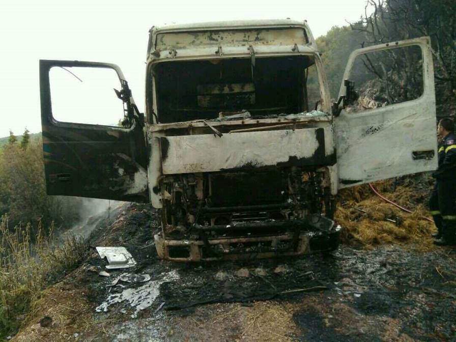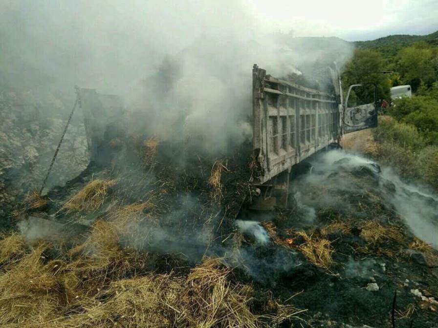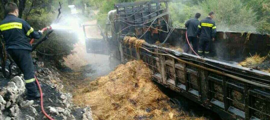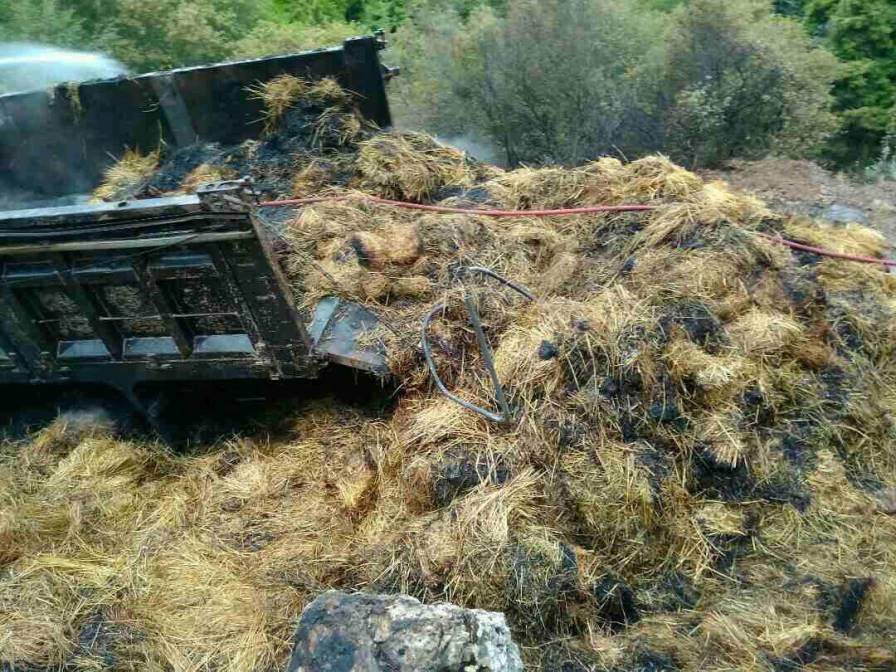 Όπως διαπιστώθηκε κατά την άφιξη των οχημάτων στο σημείο, επρόκειτο για φορτηγό όχημα με φορτίο τριφυλλιού / άχυρων σε δέματα (μπάλες) που από την φύση του προσφέρεται για ταχεία εξάπλωση της φωτιάς.