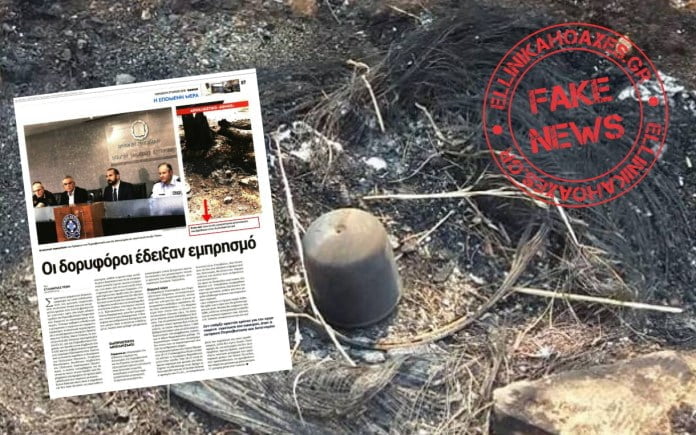 • Η φωτογραφία της εφημερίδας Έθνος που παρουσιάστηκε ως «εμπρηστικός μηχανισμός που βρέθηκε στην ανατολική Αττική», καταρρίπτεται. Τα φιαλίδια βρέθηκαν στην Κινέτα.