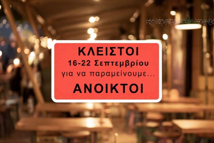 Η Εστίαση αναστέλλει τη λειτουργία της, σε πρώτη φάση και παραμείνει κλειστή από 16 έως 22 Σεπτεμβρίου