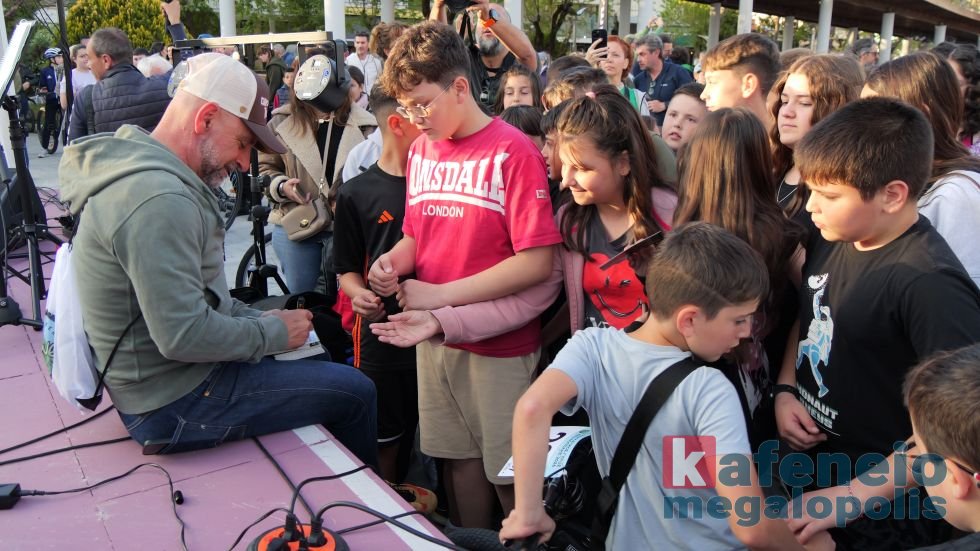 Συνεχίζονται οι εκδηλώσεις για το Megalopolis Gravel Classic 2026 με την κλήρωση ποδηλάτων -και τον Ποδηλατικό Γύρο της πόλης. H κεντρική πλατεία Μεγαλόπολης γέμισε με μικρούς μαθητές οι οποίοι δοκίμασαν την πίστα δεξιοτεχνίας και πήραν αυτόγραφα από τον χρυσό ολυμπιονίκη του 2004 Paolo Bettini.